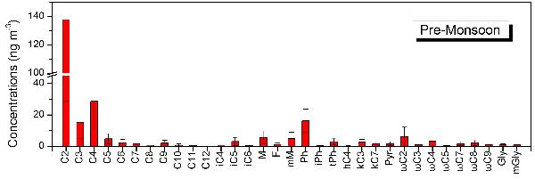 pronounced maximum in the pre-monsoon season. Molecular distributions of dicarboxylic acids and related