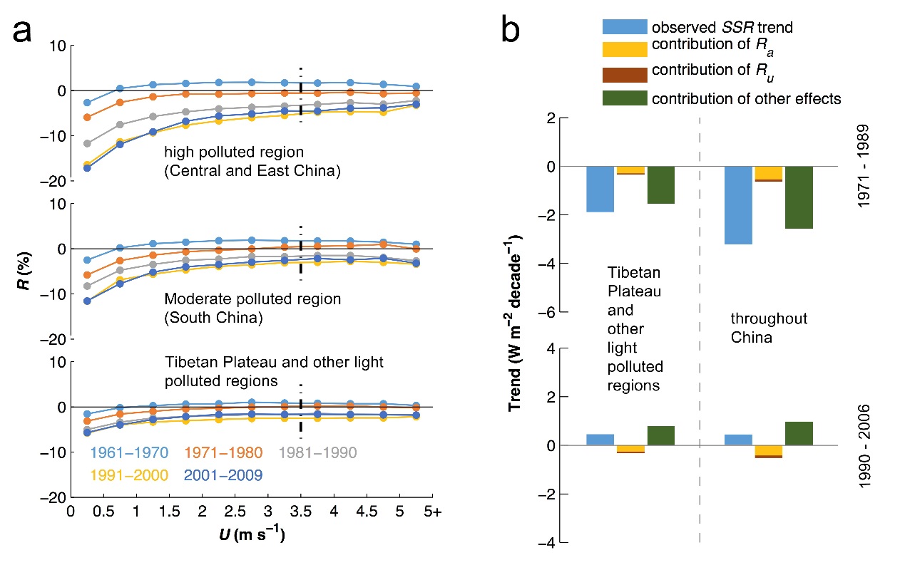 aerosol emission and wind stilling amplification effects on SSR variations at a decadal scale. The results