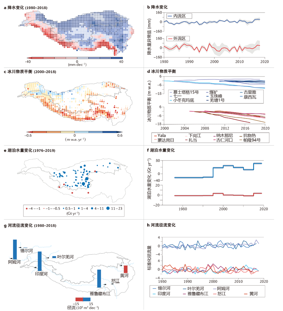 图2 亚洲水塔不同组分(降水、冰川、湖泊、河流)时空变化