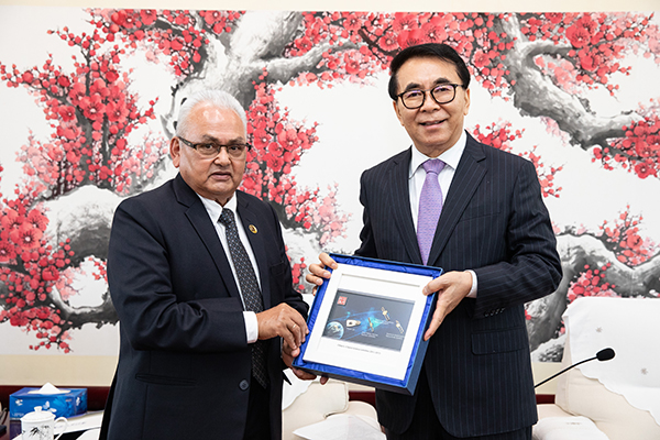 白春礼对马亨德拉·巴哈杜尔·潘迪一行表示欢迎,并向尼方介绍了中科院的基本情况以及与尼泊尔的科教合作情况。他表示,中科院与尼泊尔科技界保持着长期友好的合作关系,双方合作近年来发展迅速。2015年,中科院与尼泊尔特里布文大学合作建设了加德满都科教中心,在气候变化、自然资源、生态环境、可持续发展等方面开展了广泛合作。中科院还为尼方培养了大量科技人才,资助约200名尼方青年学生来华攻读博士和硕士学位,资助了50多位青年学者来中科院开展学术交流。此外,在“一带一路”倡议下,中科院与特里布文大学等合作伙伴于2018年联合发起成立了“一带一路”国际科学组织联盟(ANSO),积极推动多边和地区性的科技创新合作。未来,中方愿与尼驻华使馆加强工作联系,持续促进双方友好交流与合作。